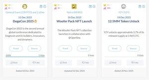 Tre kommende #memecoin arrangementer 🔥 $DOGE (@dogecoin) 11. des 2025 DogeCon 2025 👉 $NEIRO (@neiro) 16. des 2025 Woofer Pack NFT-lansering 👉 $YZY (@yzy_mny) 19. des 2025 12,5 MM token-opplåsning 👉 Flere memecoin-arrangementer 👉