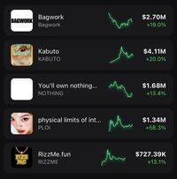 Estas moedas divertidas de pump estão a ganhar impulso! 🔥 $BAGWORK +19,0% $KABUTO +20,0% $NOTHING +13,4% $PLOI +58,3% $RIZZME +13,1%