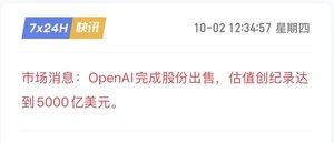 OpenAI 和 Tether 双双冲击了五千亿美金市值,两大独角兽代表的 AI 和稳定币两个方向在美国真是够狂热的。